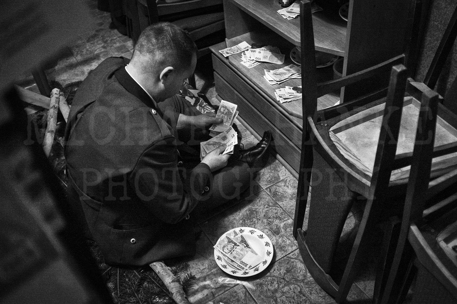 This photo series captures the specific atmosphere of hunt balls, held in many towns and villages of the Czech Republic, from the opening ceremony and dancing to the announcement of a tombola.