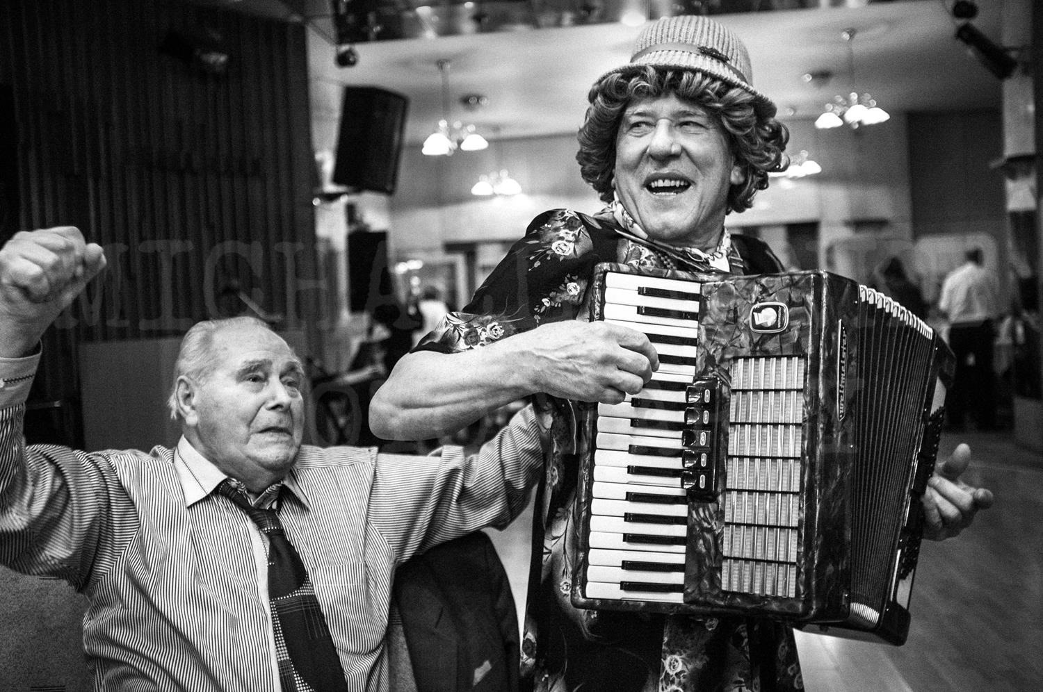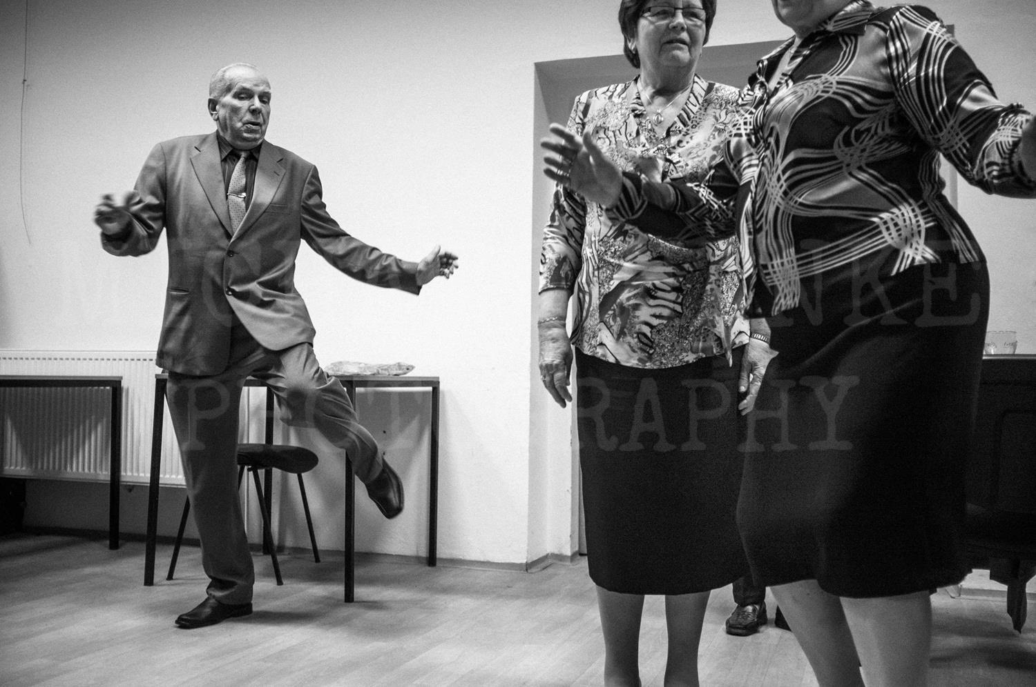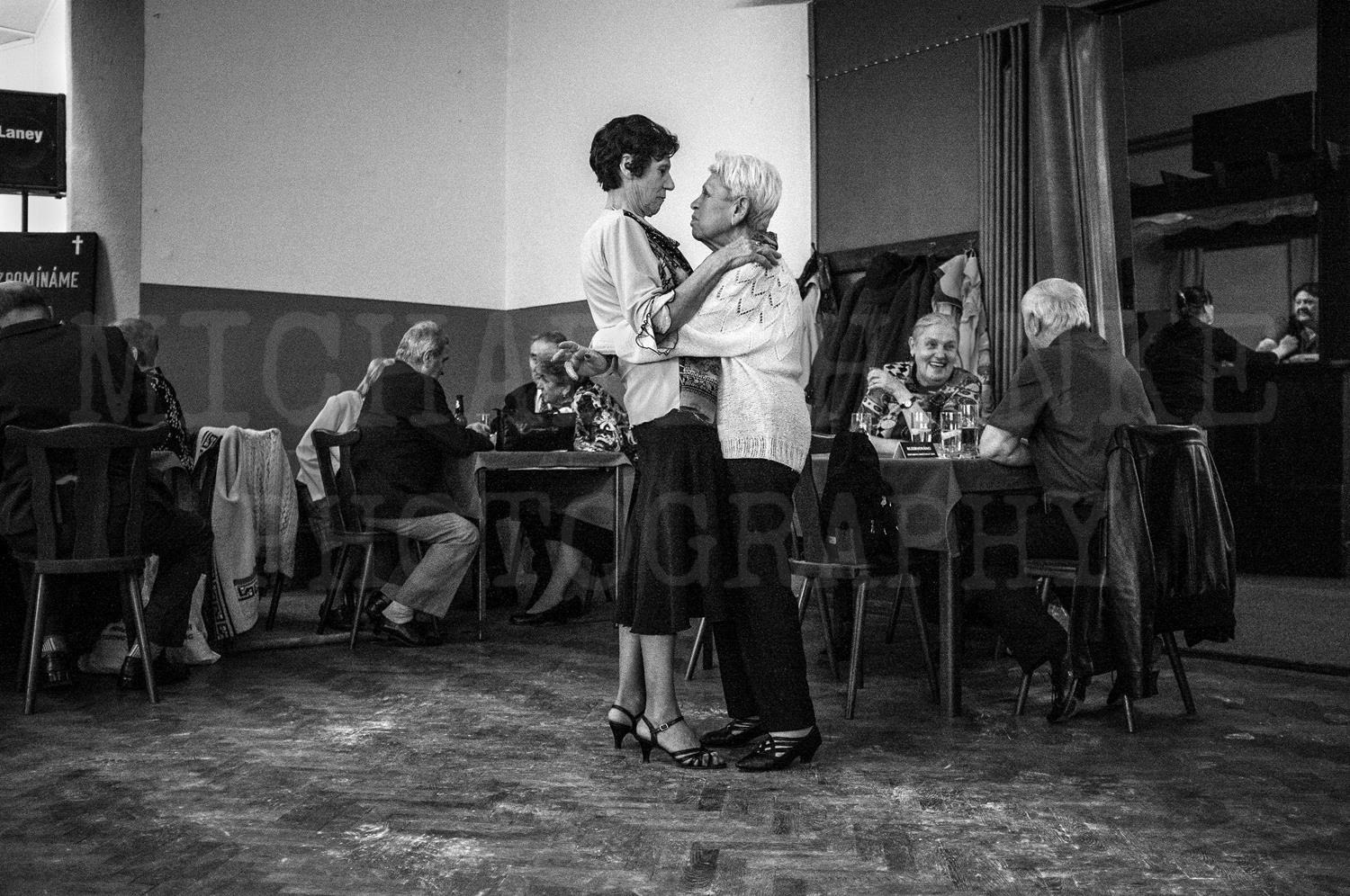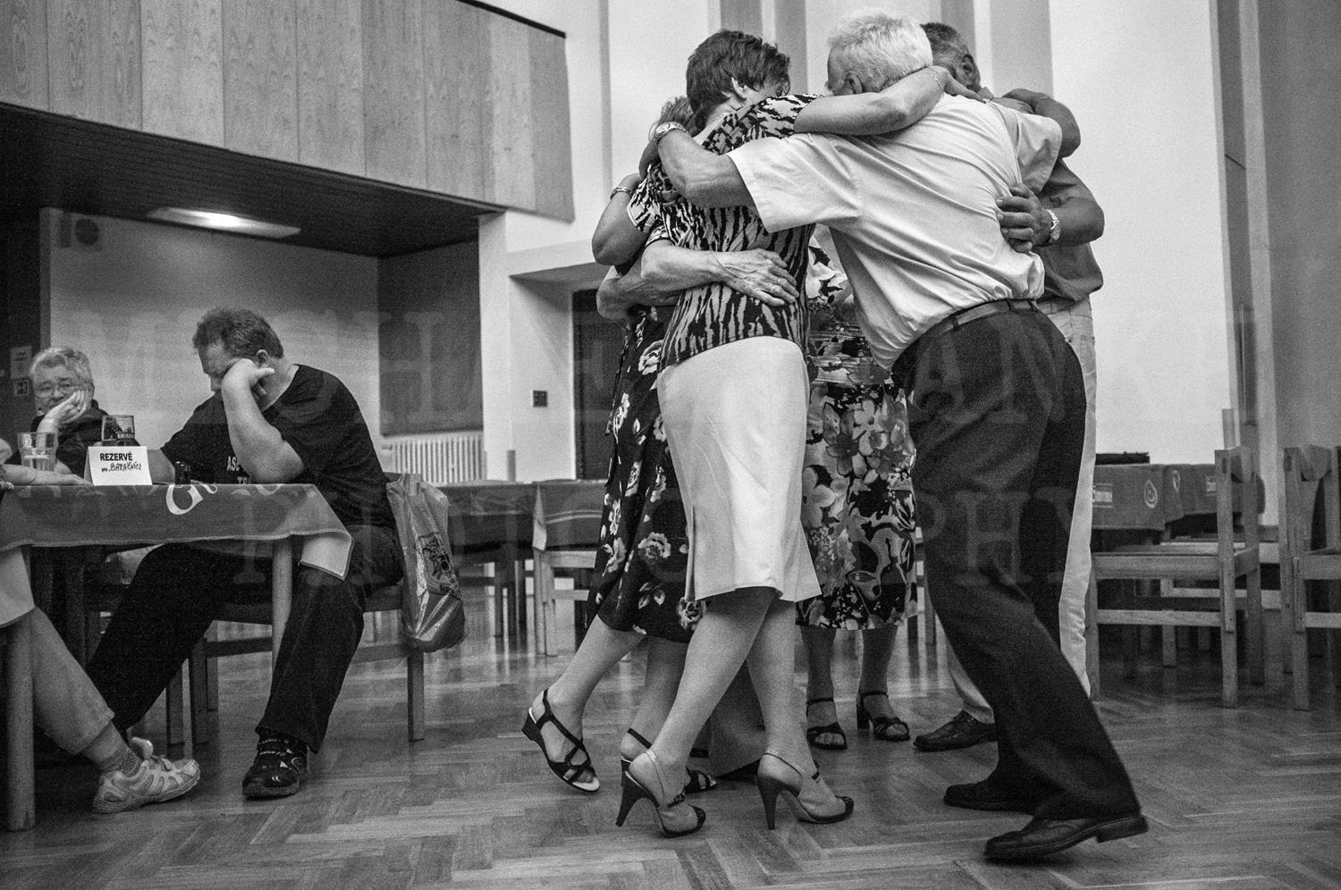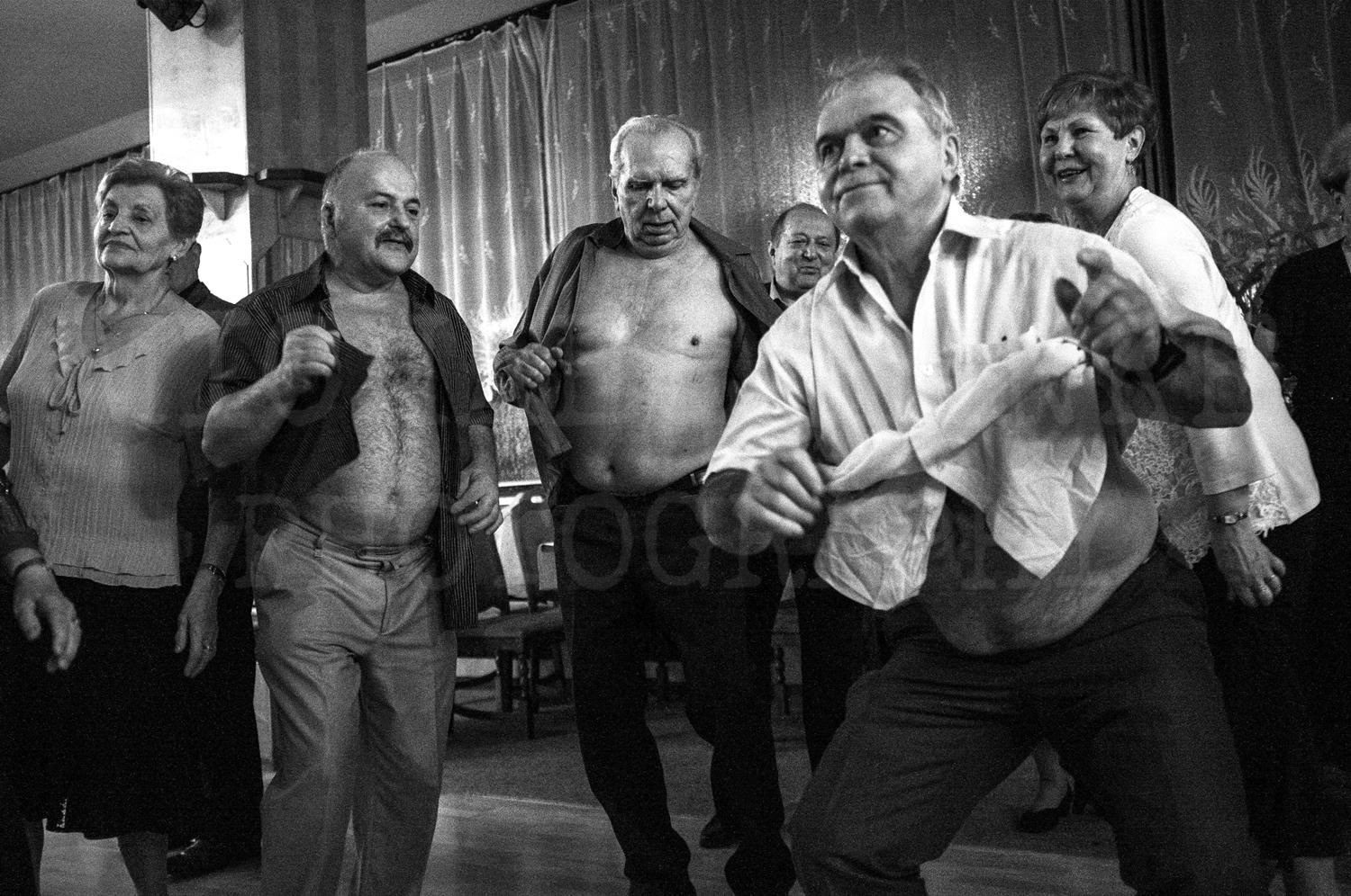This photo series documents the active social life of seniors. Despite their advanced age, they have not resigned to enjoy life and spend their time together at afternoon senior dance parties.
