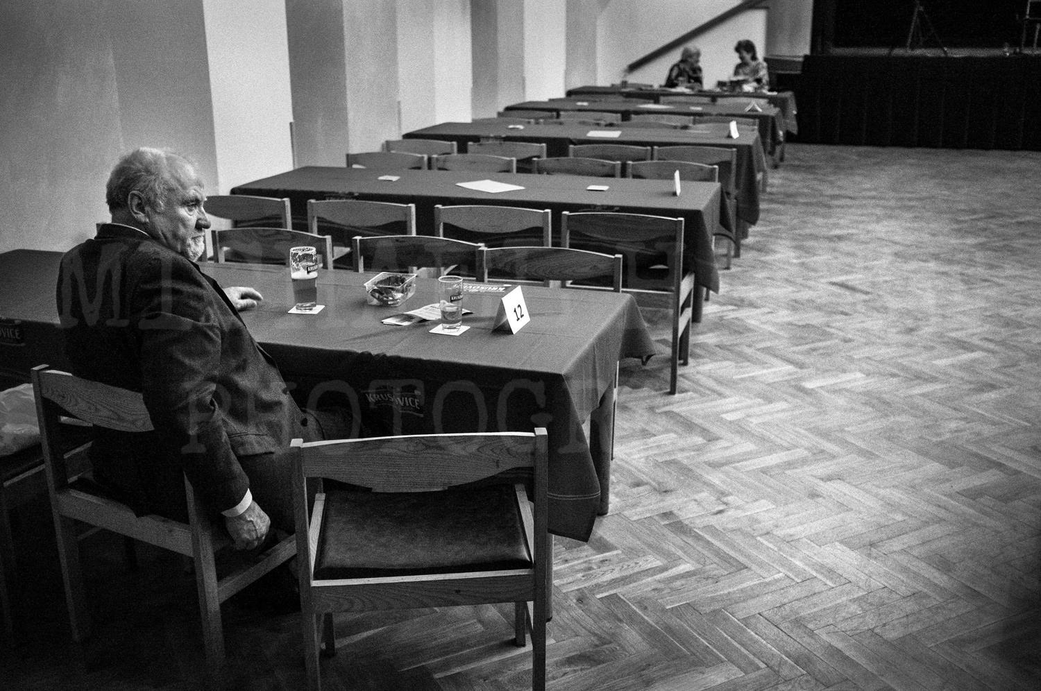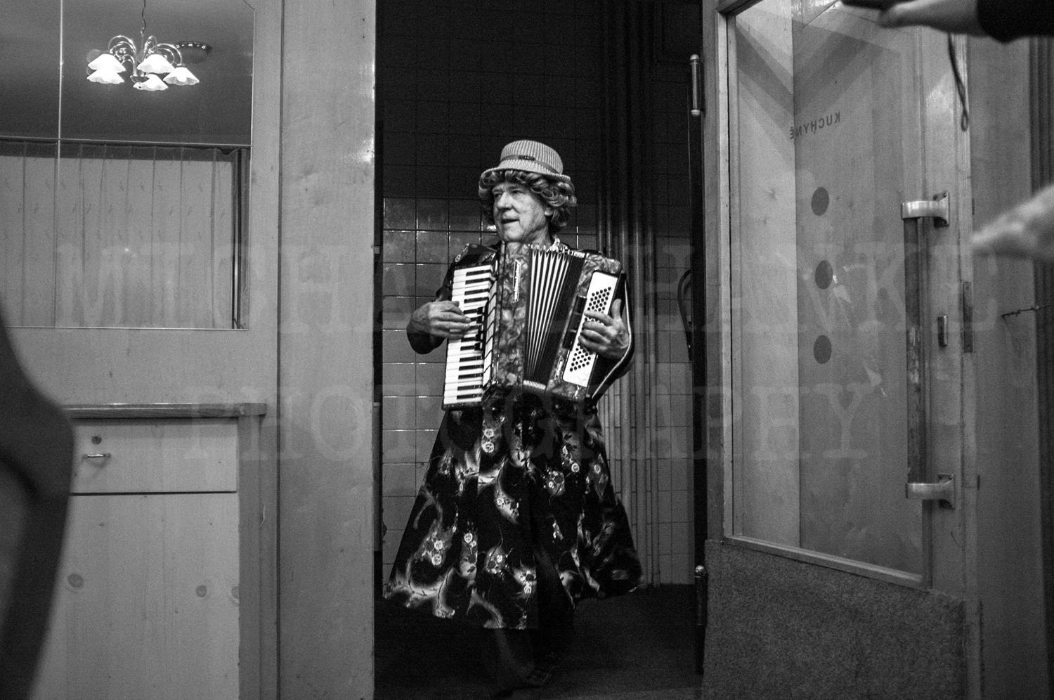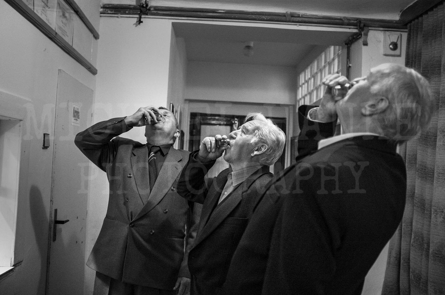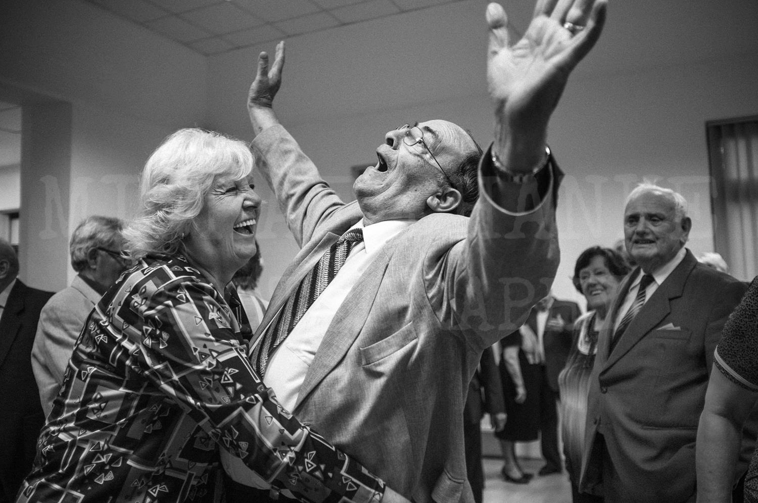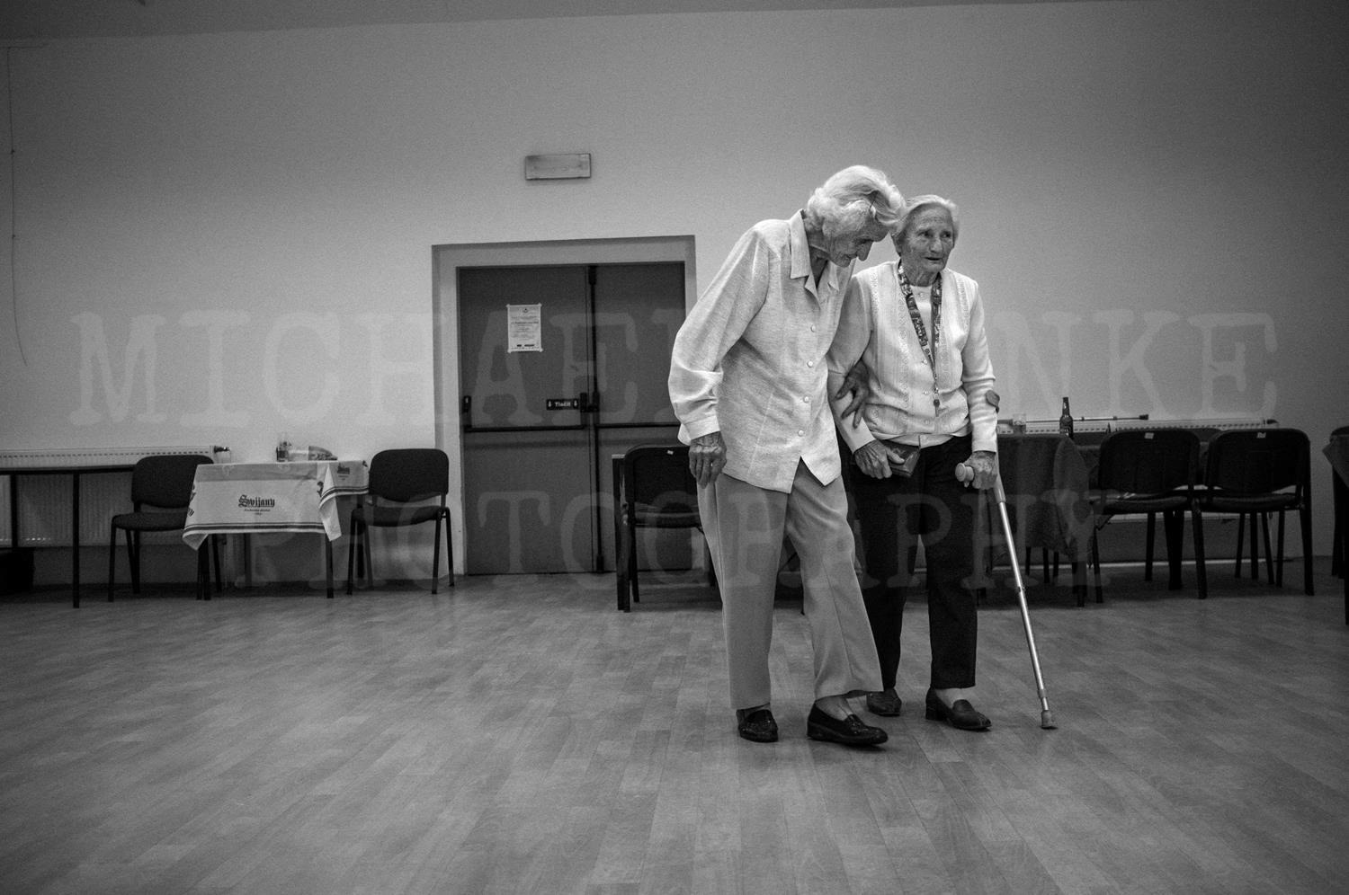 This photo series documents the active social life of seniors. Despite their advanced age, they have not resigned to enjoy life and spend their time together at afternoon senior dance parties.