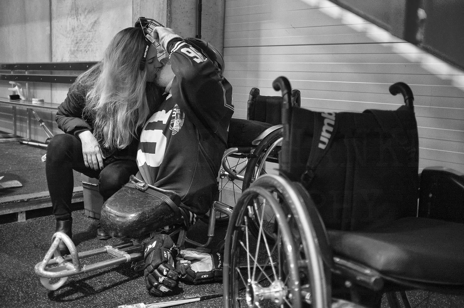 Para ice hockey (formerly known as sledge hockey) is a sport that allows athletes with a physical disability in the lower body to play ice hockey. While for non-disabled hockey players the physical exertion starts on the ice, Para ice hockey players have to accomplish a number of physically demanding tasks long before they get to the ice. Even just carrying the sledge and approximately fifteen kilos of accessories on the wheelchair before and after each practice or match is very exhausting. Additionally, access to the ice is not barrier-free in many ice hockey stadiums in the Czech Republic, so it takes a lot of strength. Despite the unpleasant fate these athletes have been confronted with, these heroes of Para ice hockey show others that this sport enables them to live their lives to the fullest and to surpass themselves and their limitations.